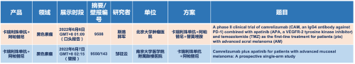 在黑色素瘤领域,好体育官网下载链接的卡瑞利珠单抗联合阿帕替尼(“双艾”组合)在2022 ASCO共入选1项口头报告和1项壁报展示。