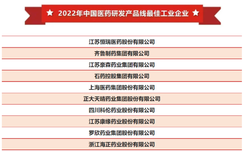 好体育官网下载链接凭借长期积累的综合竞争力和业界领先的研发实力,多年入选全国医药工业信息年会系列榜单。今年的大会上,公司继续位列中国医药工业百强企业前十,并稳居“2022年中国医药研发产品线最佳工业企业”榜首。