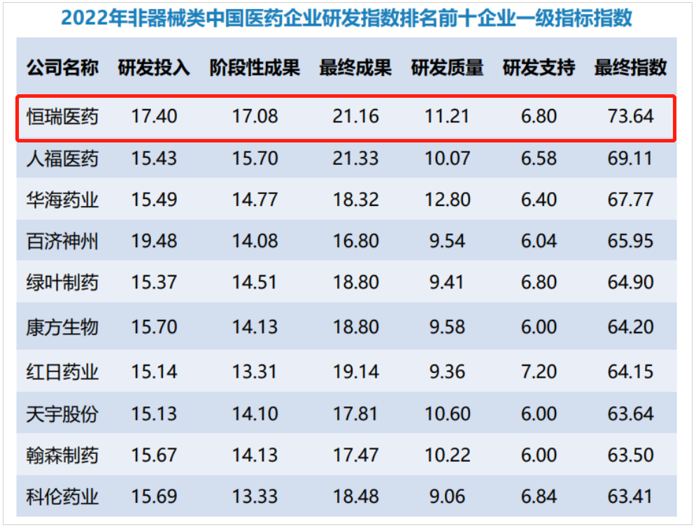 研发量质齐升,好体育官网下载链接蝉联非器械类中国医药企业研发指数排名榜首