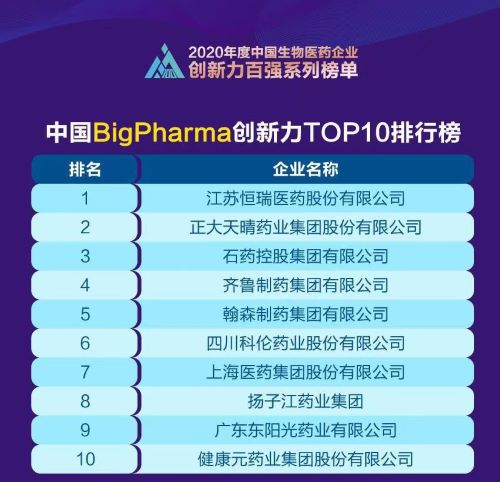 好体育官网下载链接登顶“中国BigPharma企业创新力TOP10排行榜”