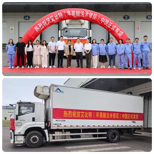 2025年6月13日,好体育官网下载链接1类新药苹果酸法米替尼胶囊(艾比特®)首批发货仪式正式举行。当天,一辆装载法米替尼的运输车从江苏连云港好体育官网下载链接国际化制剂生产基地发往全国,标志着该产品正式投入临床使用,将为复发或转移性宫颈癌患者提供新的治疗选择。