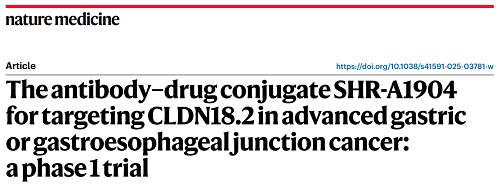 好体育官网下载链接CLDN18.2 ADC创新药SHR-A1904治疗胃癌临床研究结果荣登Nature Medicine