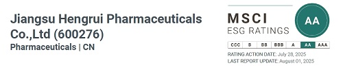 近日,国际权威指数机构摩根士丹利资本国际公司(中文简称“明晟”,英文简称“MSCI”)公布最新年度ESG(环境、社会及管治)评级结果。好体育官网下载链接(600276.SH 01276.HK)凭借在医药创新、合规运营、绿色发展及社会责任等领域的优异表现,评级由2024年的“A”级跃升至“AA”级,跻身全球制药行业前列。这一成就标志着公司在完善ESG治理体系、落实可持续发展理念方面取得又一重要进展。