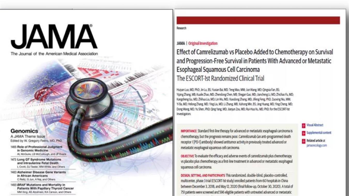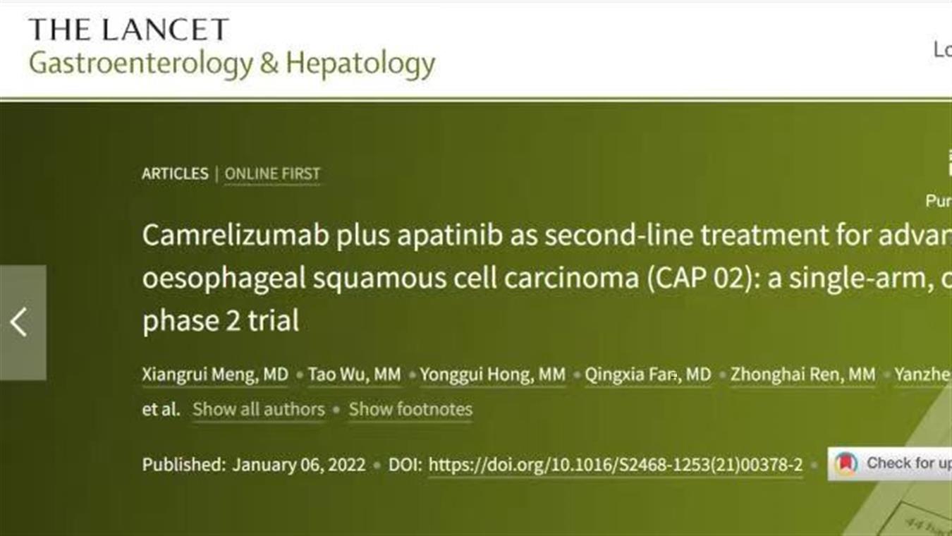 喜讯!好体育官网下载链接卡瑞利珠单抗食管癌研究再登国际顶级医学期刊