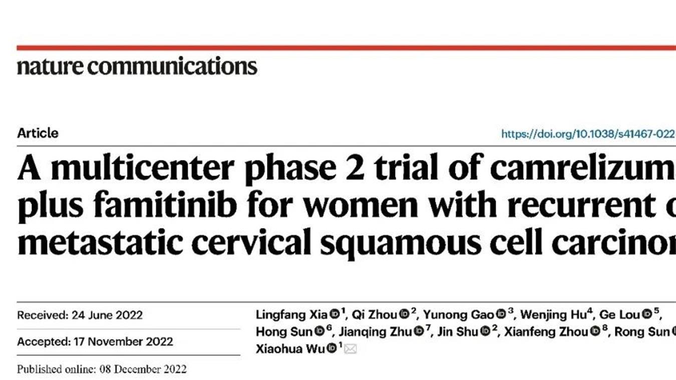 恒瑞创新药卡瑞利珠单抗联合法米替尼用于复发或转移性宫颈癌研究结果荣登JCO